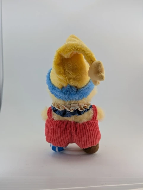 This character is Twinkle Twinkle. Wears a fuzzy yellow hat with a star, a blue bow tie, and a red vest.